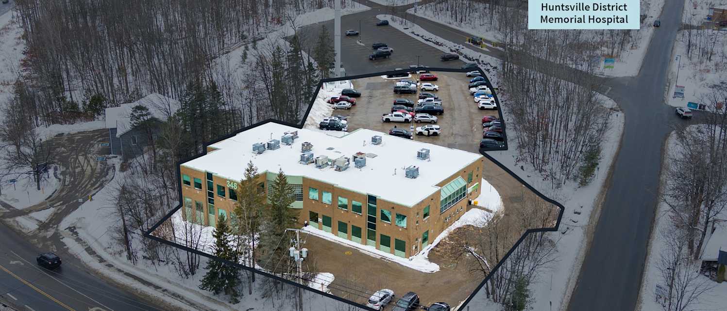 The JLL Private Capital Group is pleased to offer for sale 348 Muskoka Road 3 North (the “Property” or “Site”), a 17,266 square foot ("sf") medical office building in Huntsville, one of the largest and most established townships in the Muskoka region. The Property offers essential medical functions that support both Huntsville District Memorial Hospital - the region's primary healthcare facility - and the future Bob Hutcheson Hospital. Current tenants include specialized medical practices in pharmacology, dental care, and cardiology that provide vital services to complement the area's growing healthcare infrastructure.
