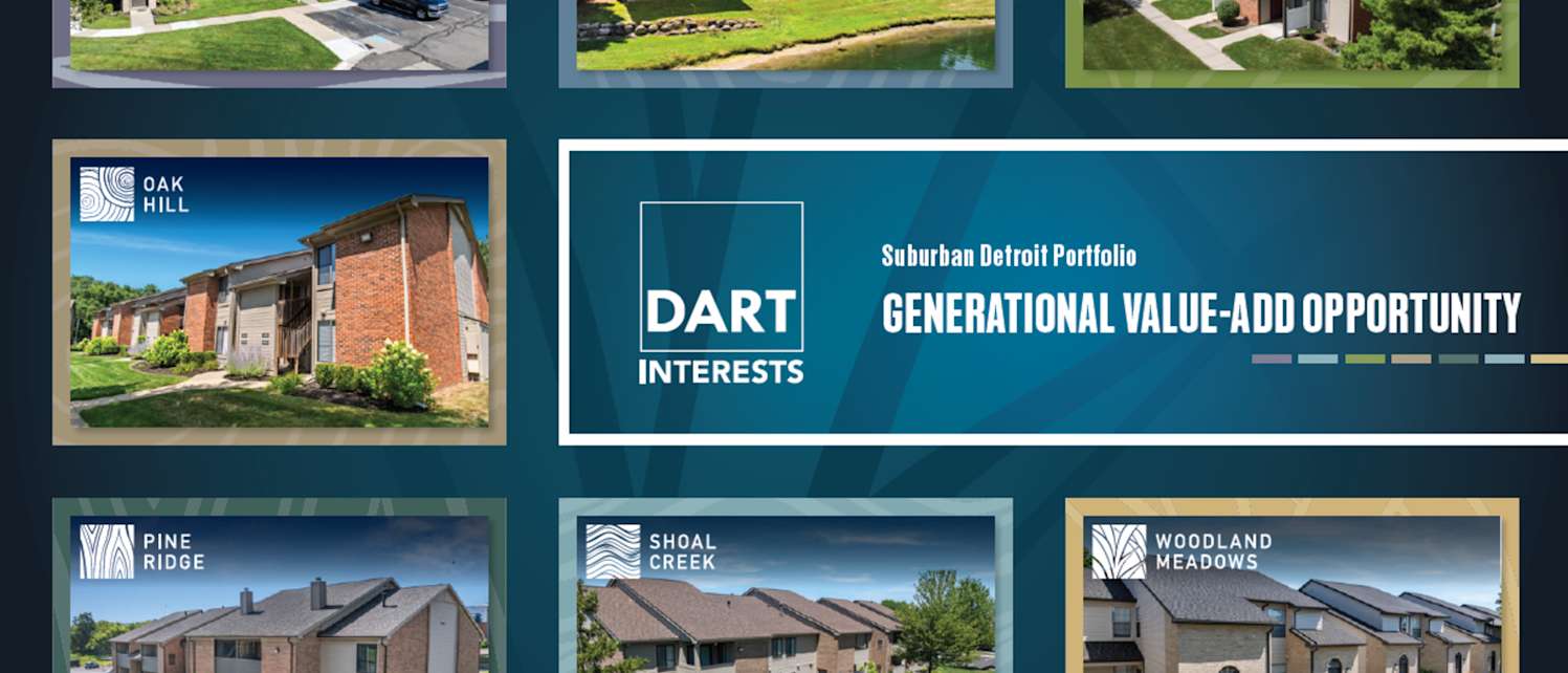 JLL has been retained as the exclusive investment advisor in the sale of the Dart Interests Suburban Detroit Portfolio (the “Portfolio”), a multifamily portfolio consisting of 2,748 units across the following seven properties: Heather Ridge, Hidden Lakes, Laurel Valley, Oak Hill, Pine Ridge, Shoal Creek, and Woodland Meadows. The Portfolio is geographically diversified across Metro Detroit within the employment and amenity-rich suburban markets of Clarkston, Clinton Township, Rochester Hills, Shelby Township, Sterling Heights, and Westland. This offering may be acquired as a portfolio, through sub-portfolios, or on an individual property basis.