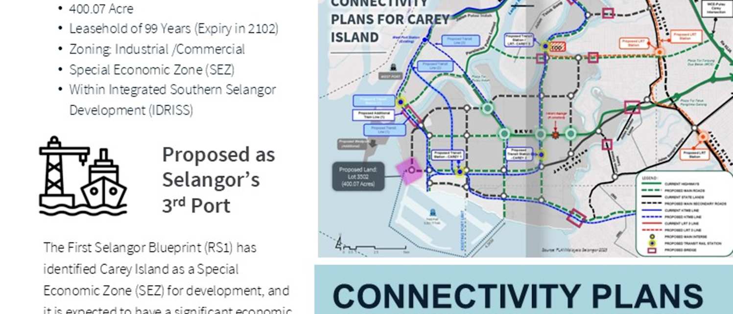 Discover a prime investment opportunity: 400 acres in Carey Island, Selangor, strategically located 8km south of Bandar Klang and 35km southwest of Kuala Lumpur. Carey Island is set to support Port Klang's expansion and is proposed as Selangor's third port. Offered at an attractive early-stage price, it promises appreciation as shipping traffic increases, driving demand for maritime services. Aligned with Selangor's development plan and administered by MPKL, this land represents a rare chance to invest in Malaysia's growing maritime and logistics sectors.