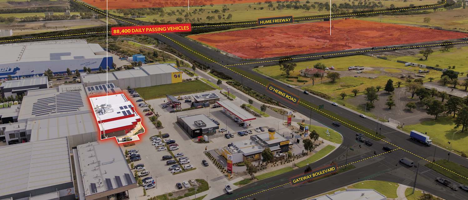 + Prominent position, metres from the Hume Freeway and O’Herns Road intersection, two major arterial road links servicing over 88,000 vehicles passing daily.
